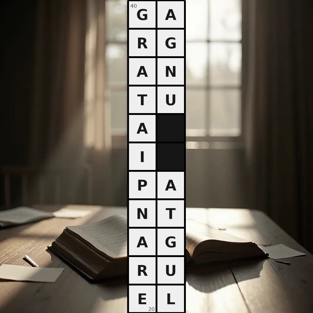 Słowo „gargantua i pantagruel” ma 20 znaków (bez spacji i łączników).