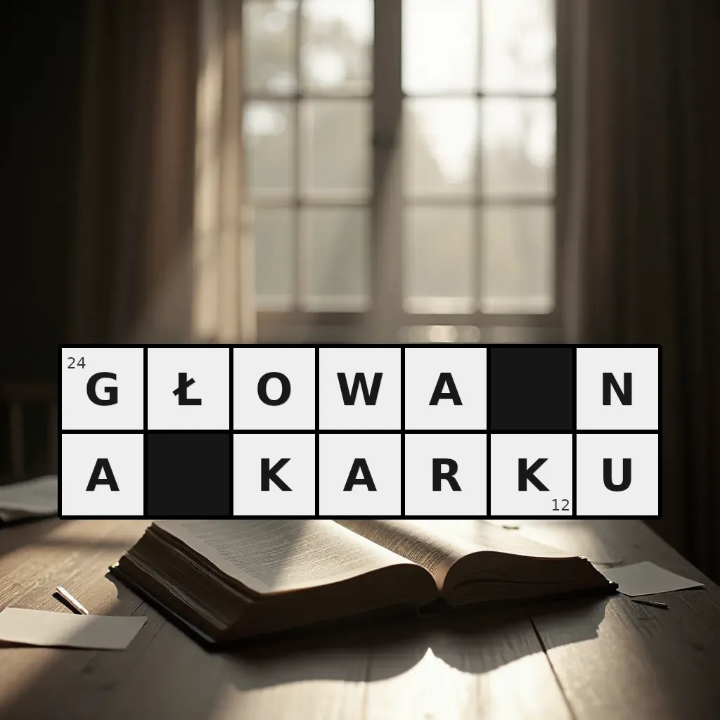 Słowo „głowa na karku” ma 12 znaków (bez spacji i łączników).