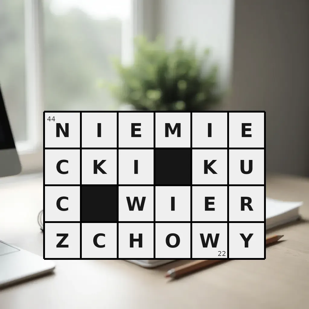 Słowo „niemiecki kuc wierzchowy” ma 22 znaki (bez spacji i łączników).