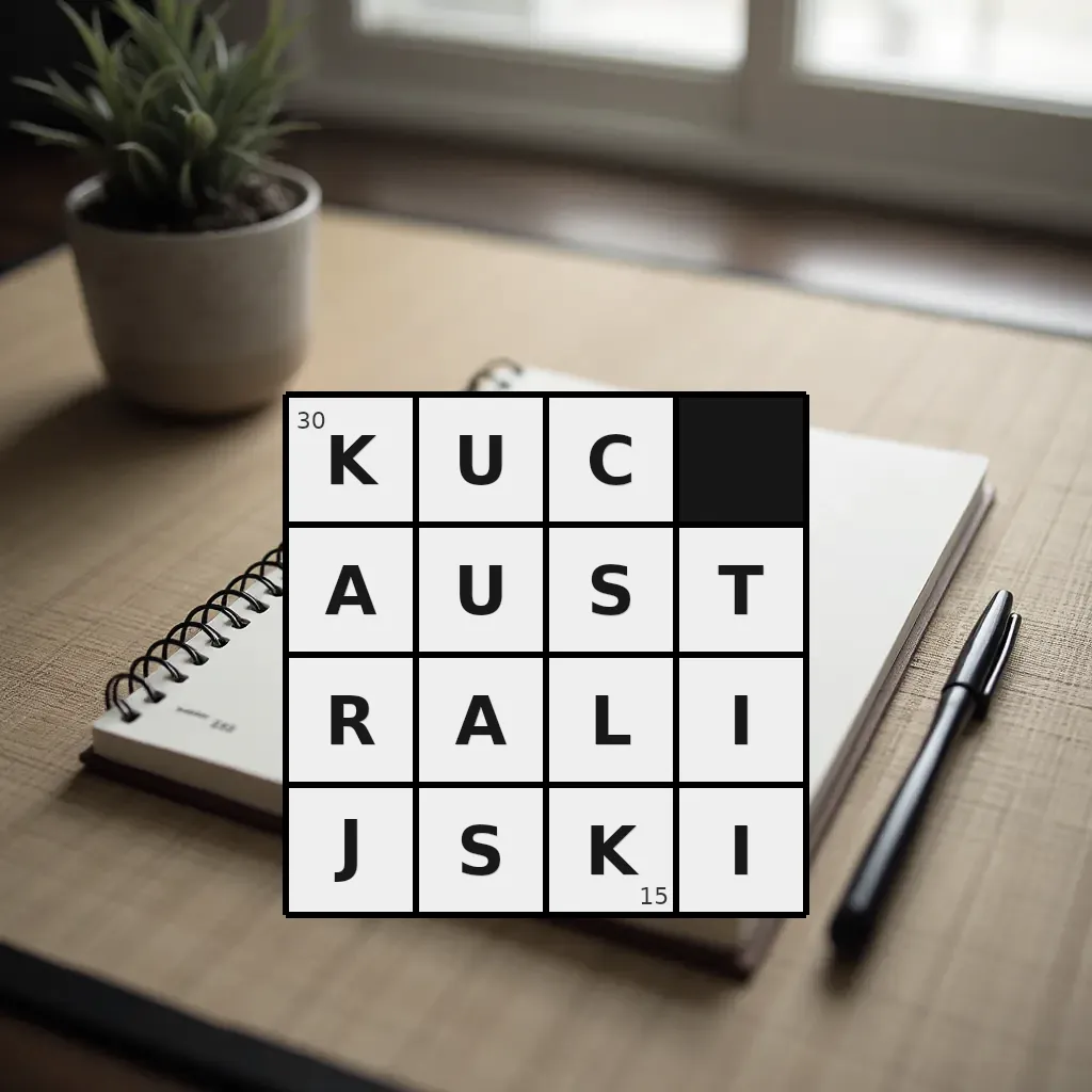 Słowo „kuc australijski” ma 15 znaków (bez spacji i łączników).