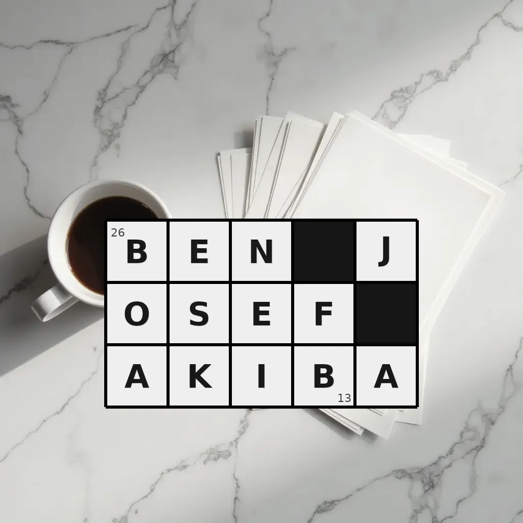 Słowo „ben josef akiba” ma 13 znaków (bez spacji i łączników).