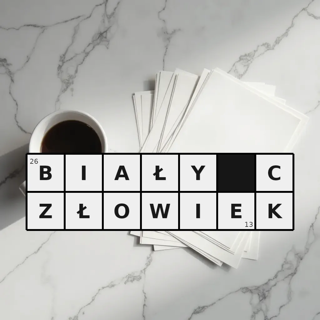 Słowo „biały człowiek” ma 13 znaków (bez spacji i łączników).