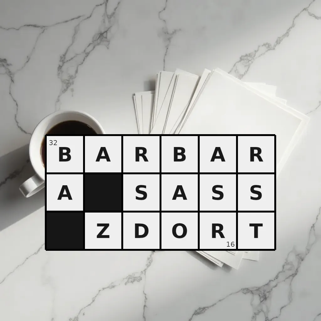 Słowo „barbara sass-zdort” ma 16 znaków (bez spacji i łączników).
