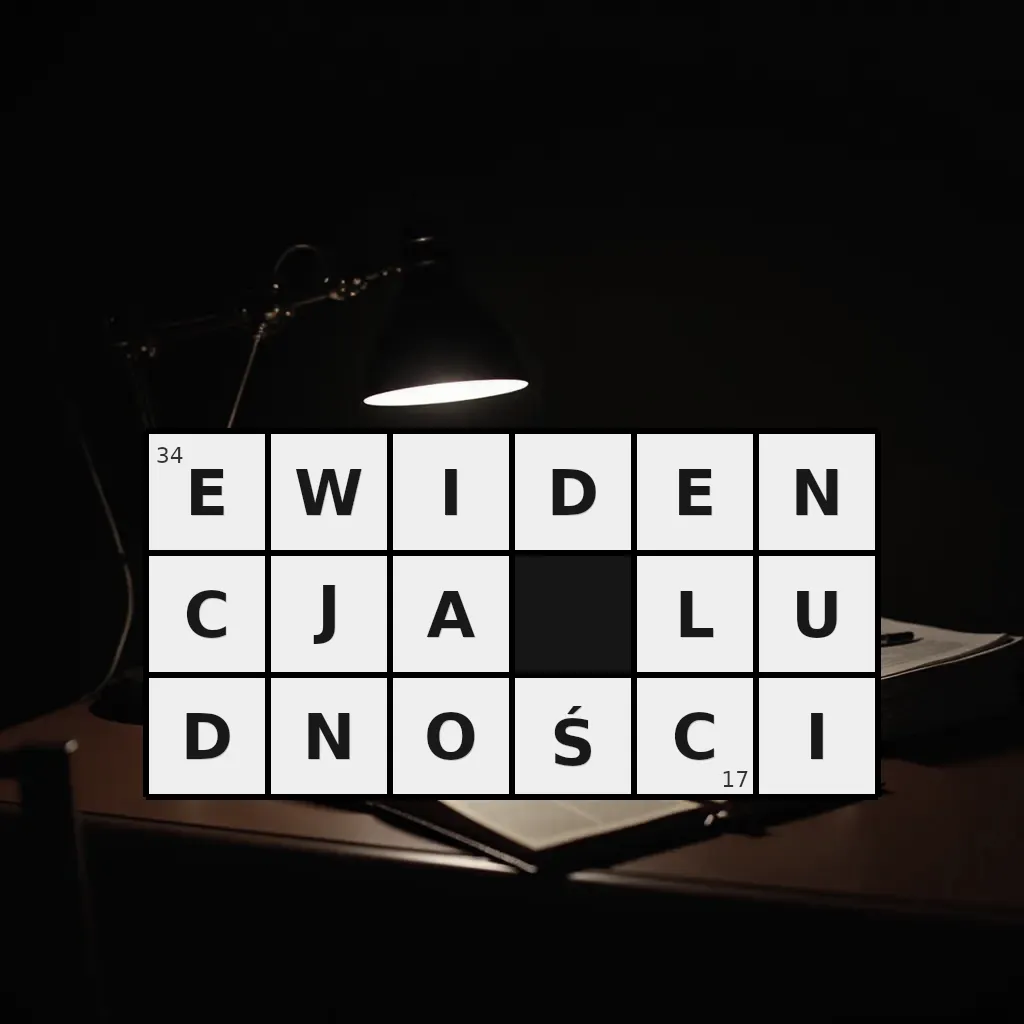 Słowo „ewidencja ludności” ma 17 znaków (bez spacji i łączników).