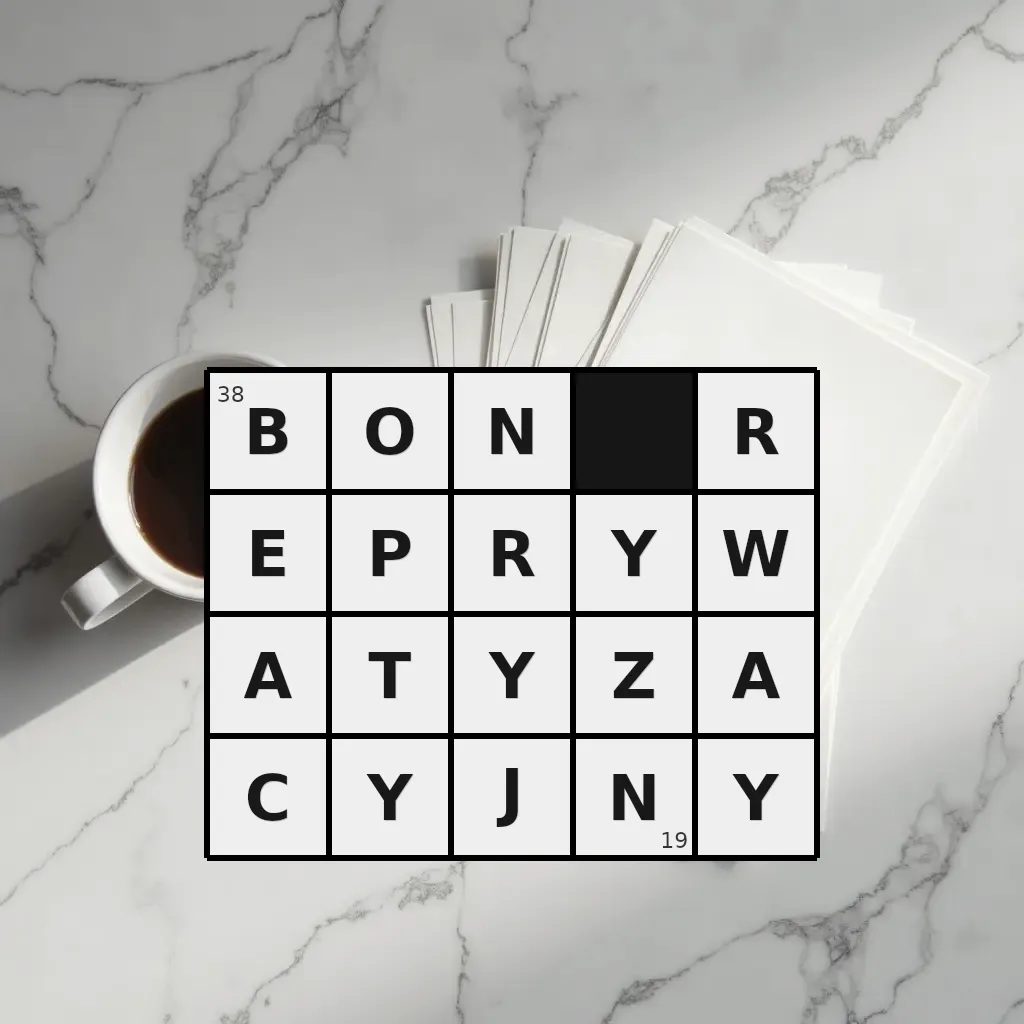Zawiera litery: A, A, B, C, E, J, N, N, O, P, R, R, T, W, Y, Y, Y, Y, Z