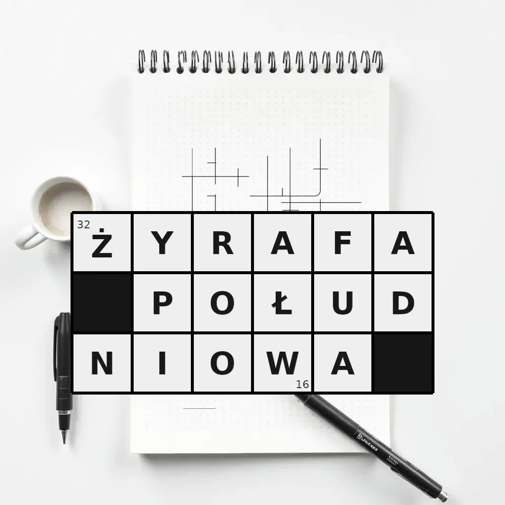 Słowo „żyrafa południowa” ma 16 znaków (bez spacji i łączników).