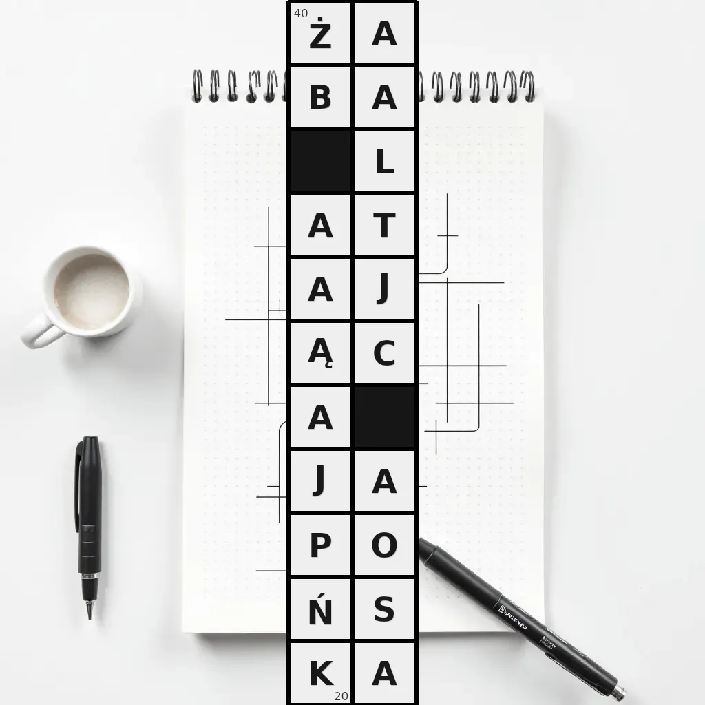 Zawiera litery: A, A, A, A, A, A, A, B, C, J, J, K, L, O, P, S, T, Ą, Ń, Ż