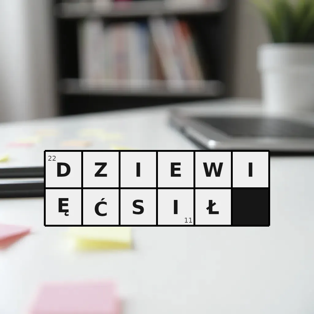 Słowo „dziewięćsił” ma 11 znaków (bez spacji i łączników).