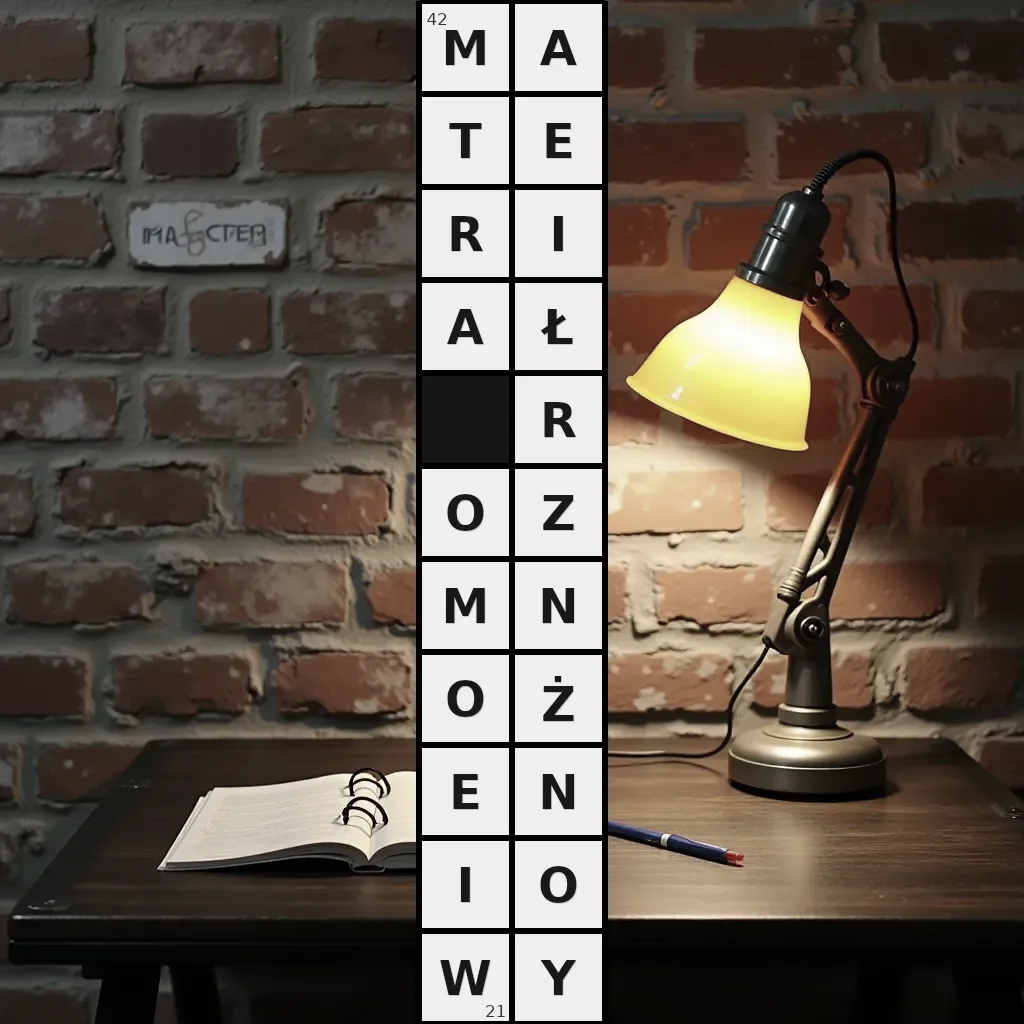 Zawiera litery: A, A, E, E, I, I, M, M, N, N, O, O, O, R, R, T, W, Y, Z, Ł, Ż
