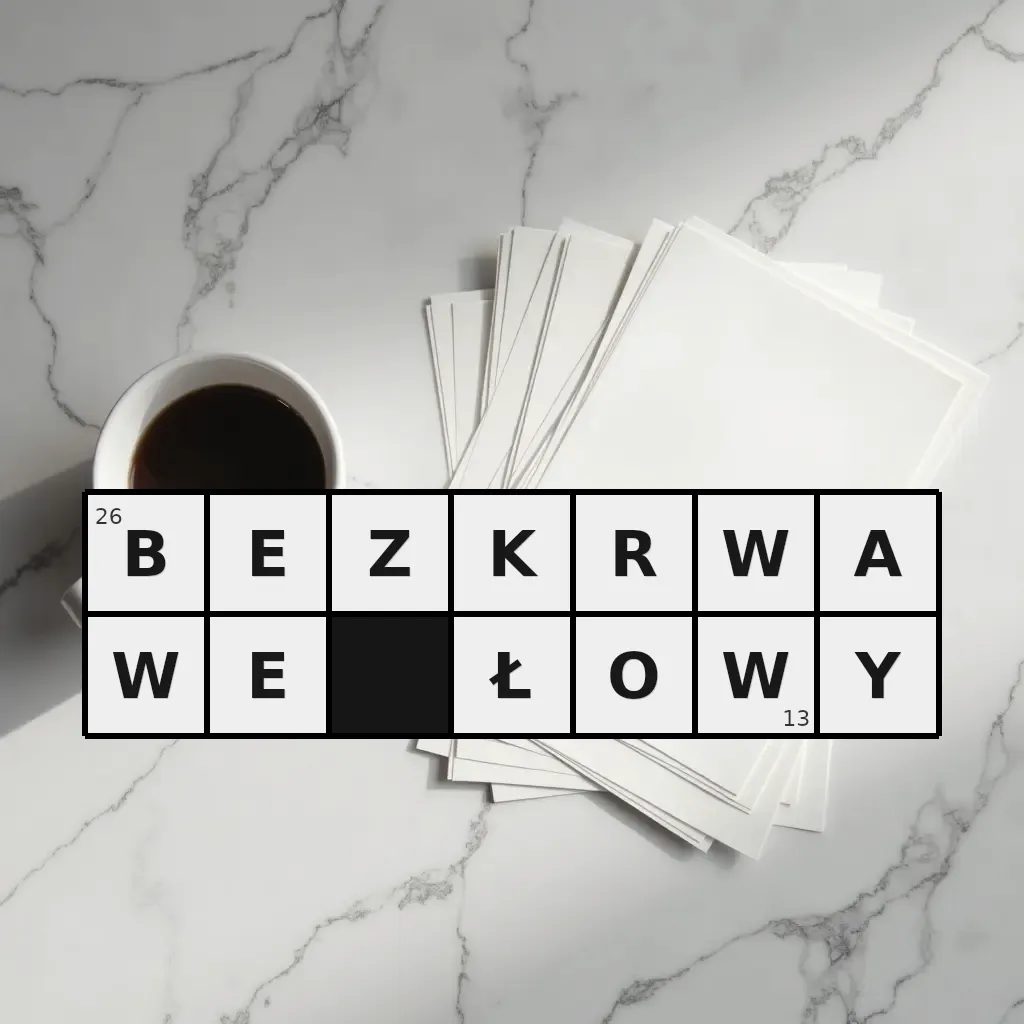 Słowo „bezkrwawe łowy” ma 13 znaków (bez spacji i łączników).