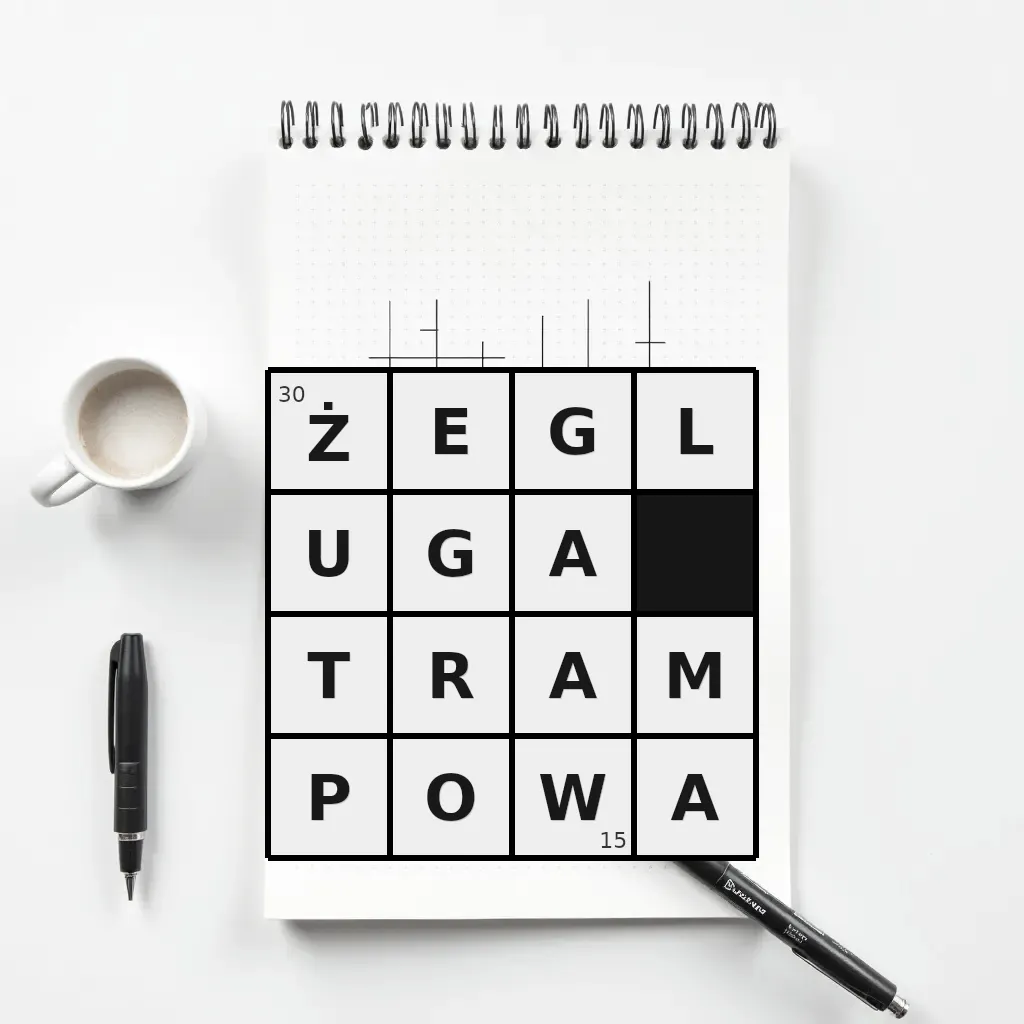 Słowo „żegluga trampowa” ma 15 znaków (bez spacji i łączników).