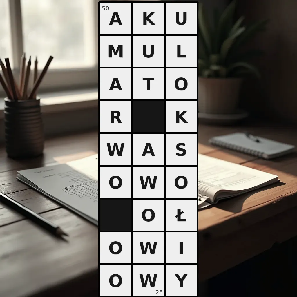 Słowo „akumulator kwasowo-ołowiowy” ma 25 znaków (bez spacji i łączników).