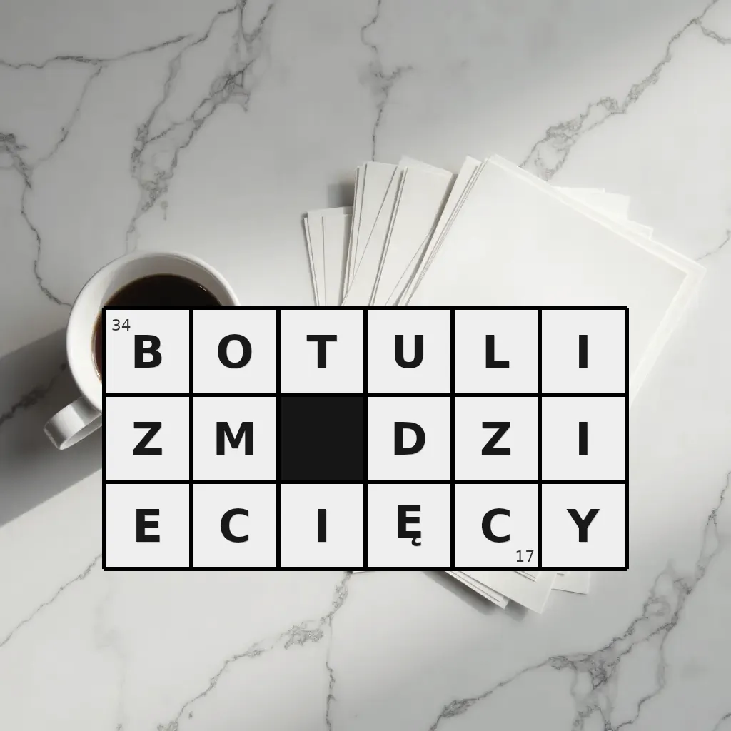 Słowo „botulizm dziecięcy” ma 17 znaków (bez spacji i łączników).
