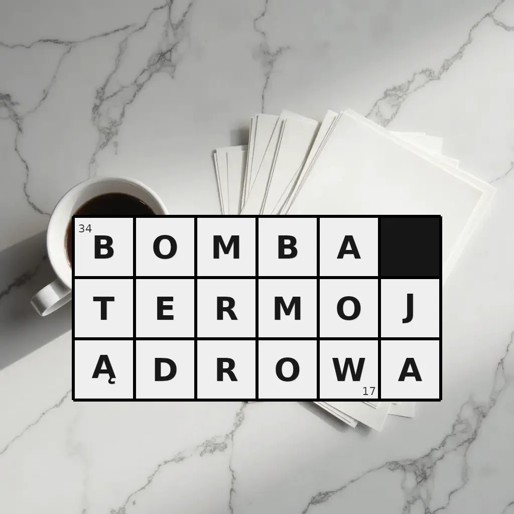 Słowo „bomba termojądrowa” ma 17 znaków (bez spacji i łączników).