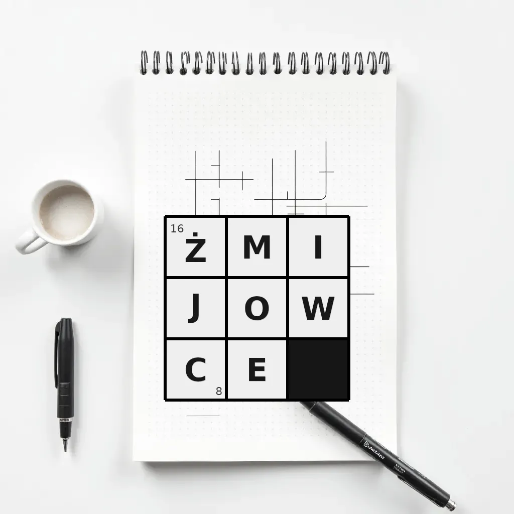 Słowo „żmijowce” ma 8 znaków (bez spacji i łączników).