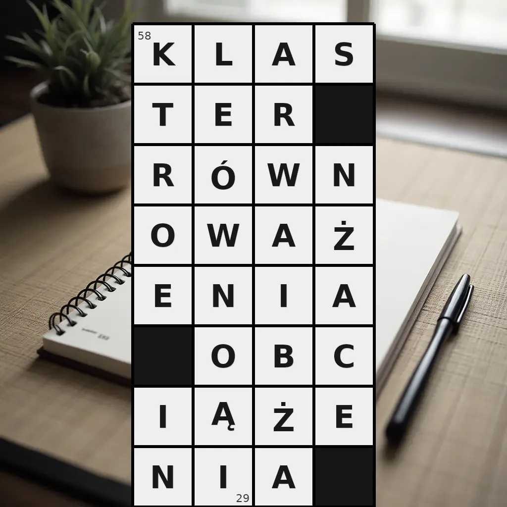 Słowo „klaster równoważenia obciążenia” ma 29 znaków (bez spacji i łączników).