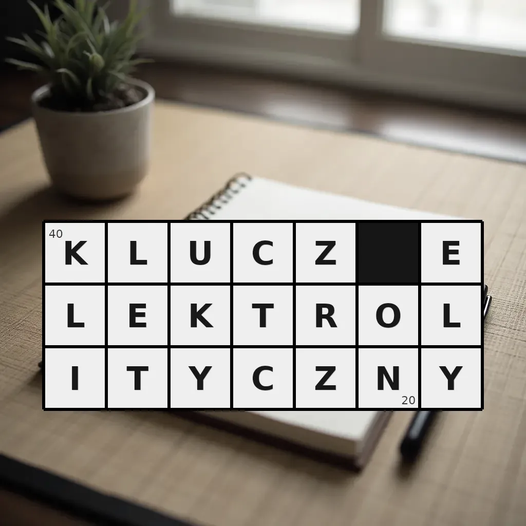 Słowo „klucz elektrolityczny” ma 20 znaków (bez spacji i łączników).