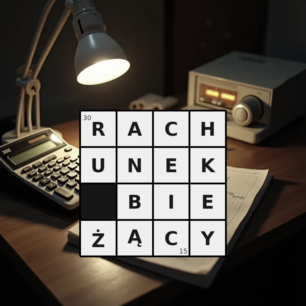 Słowo „rachunek bieżący” ma 15 znaków (bez spacji i łączników).