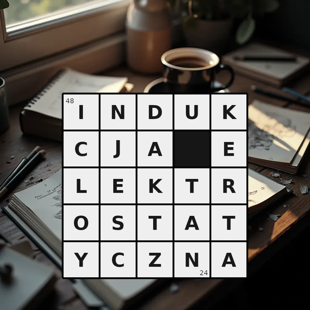 Słowo „indukcja elektrostatyczna” ma 24 znaki (bez spacji i łączników).