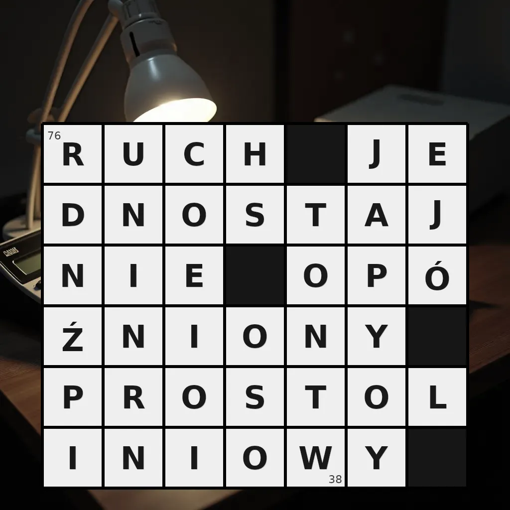 Słowo „ruch jednostajnie opóźniony prostoliniowy” ma 38 znaków (bez spacji i łączników).