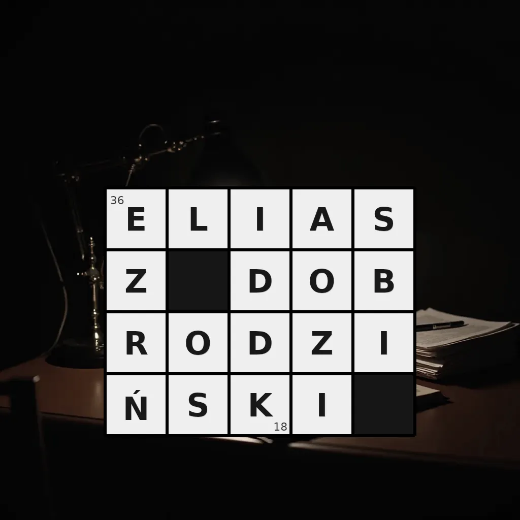 Słowo „eliasz dobrodziński” ma 18 znaków (bez spacji i łączników).