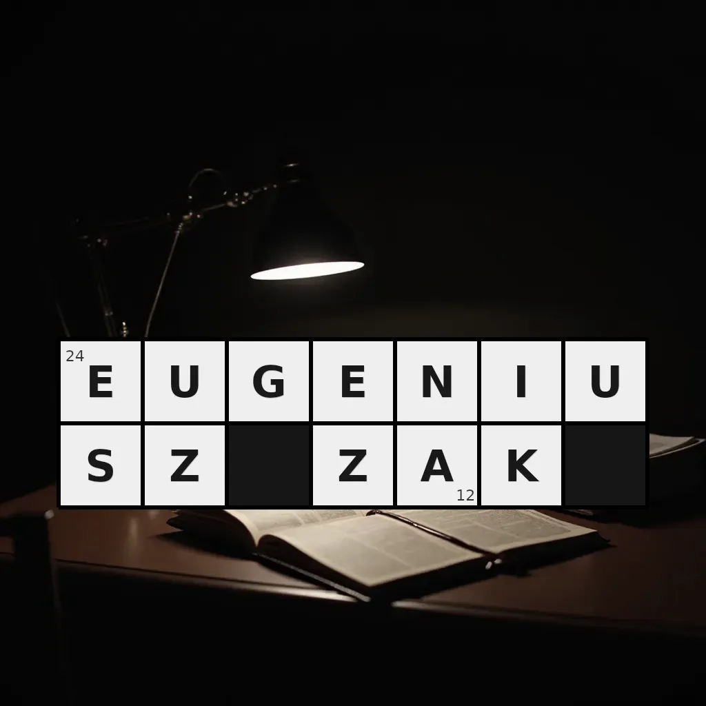Słowo „eugeniusz zak” ma 12 znaków (bez spacji i łączników).