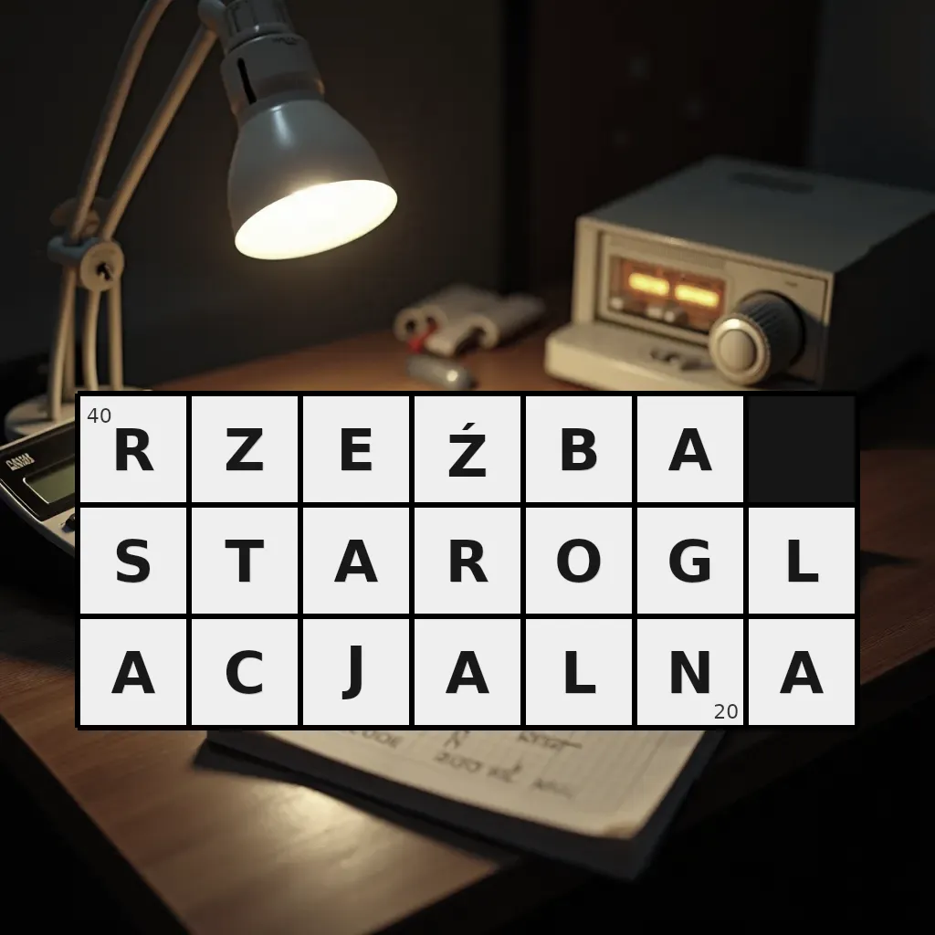 Zawiera litery: A, A, A, A, A, B, C, E, G, J, L, L, N, O, R, R, S, T, Z, Ź