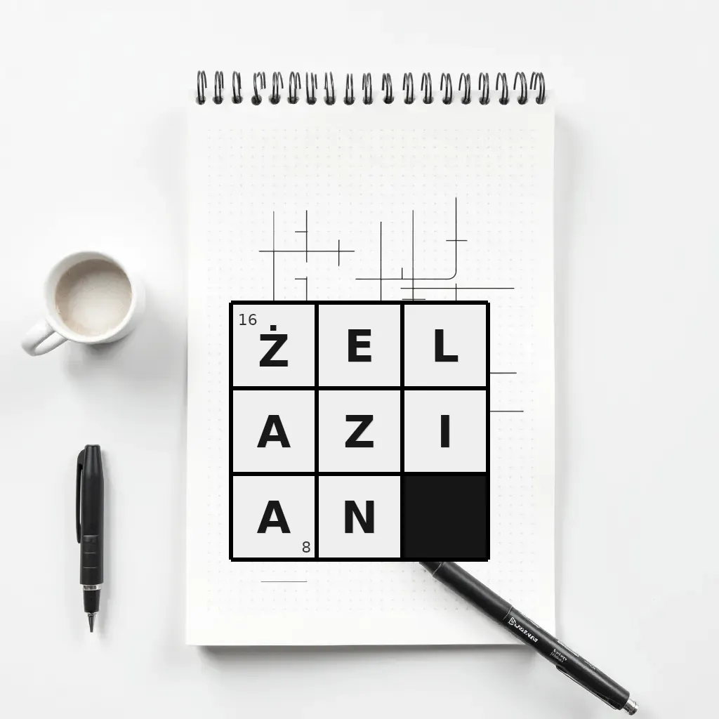 Słowo „żelazian” ma 8 znaków (bez spacji i łączników).