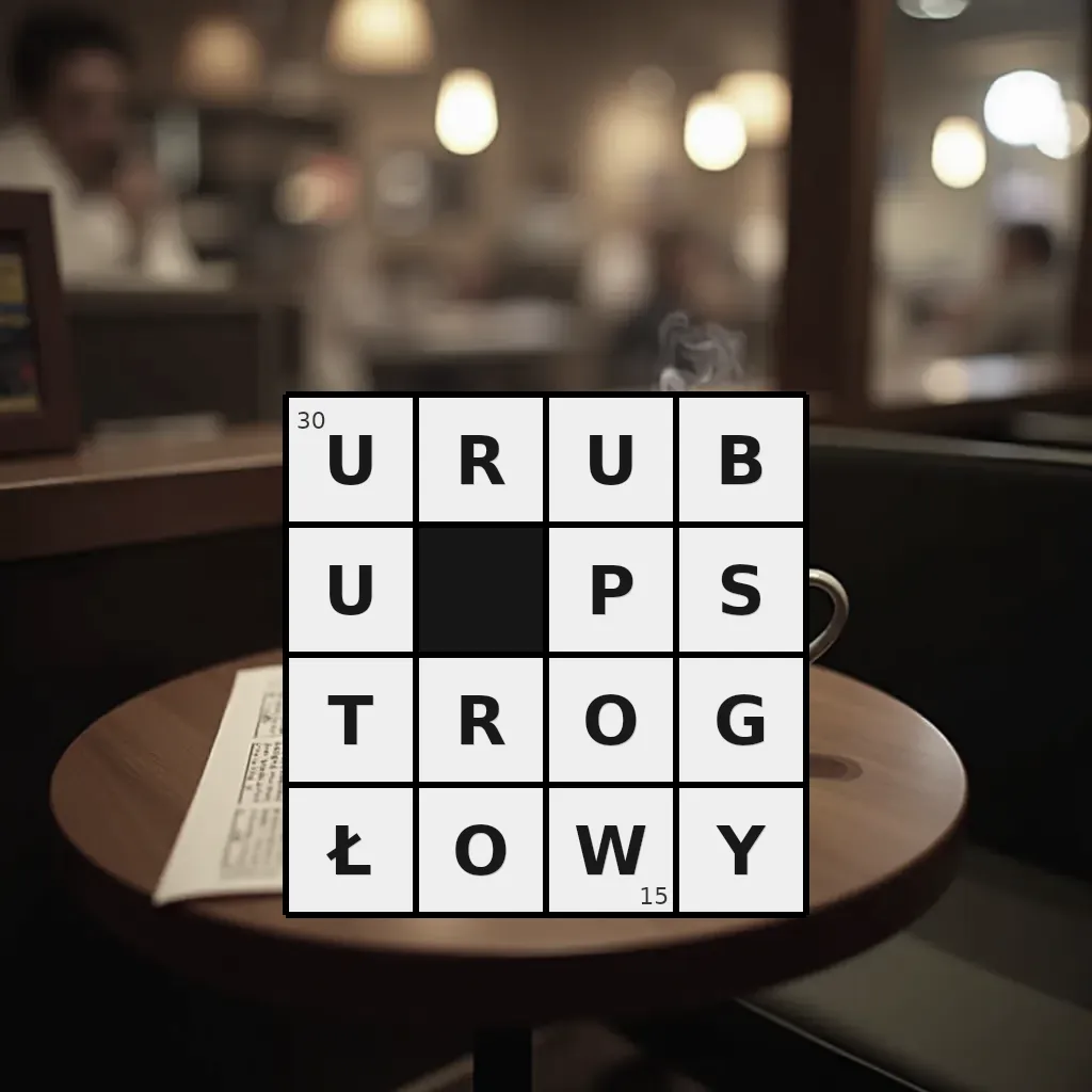 Zawiera litery: B, G, O, O, P, R, R, S, T, U, U, U, W, Y, Ł