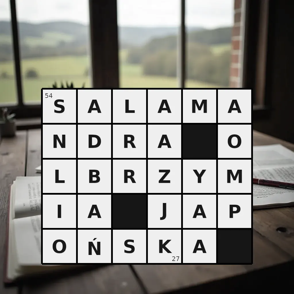 Słowo „salamandra olbrzymia japońska” ma 27 znaków (bez spacji i łączników).