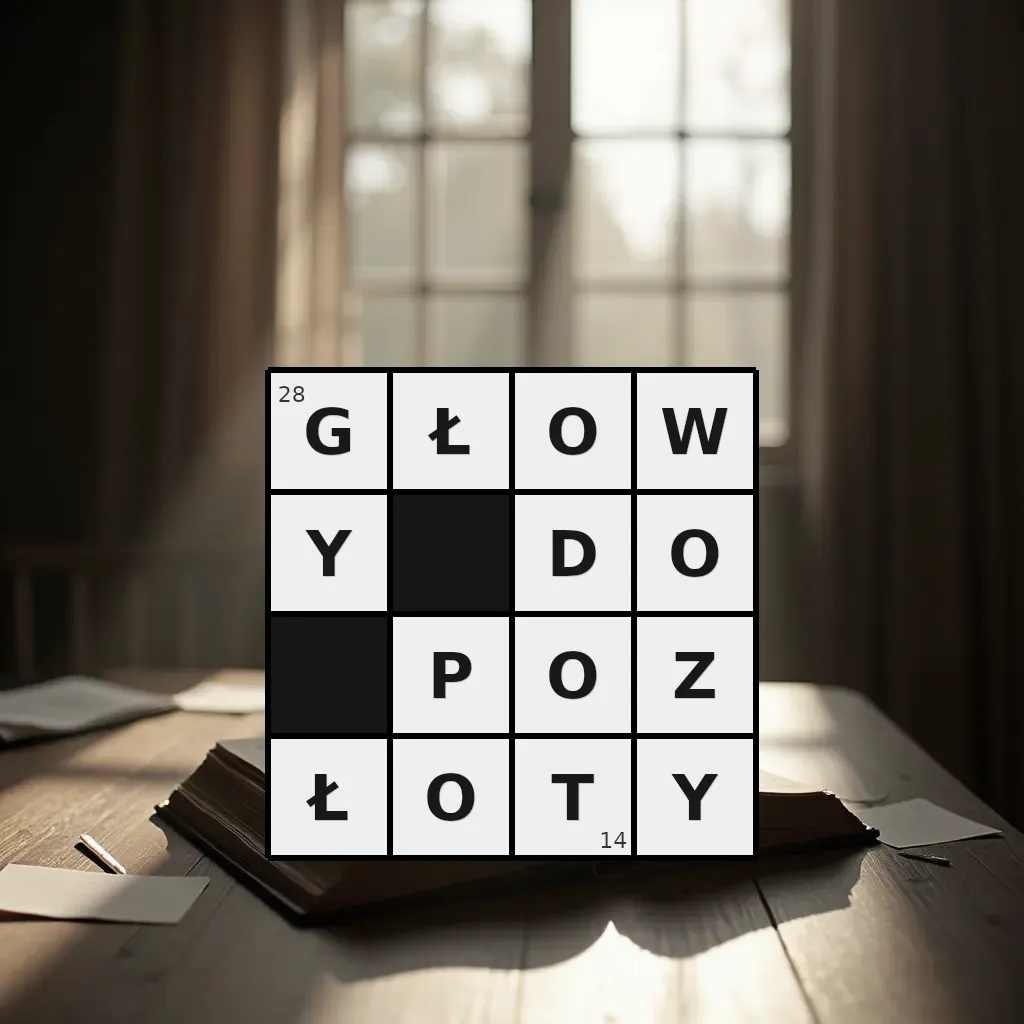Słowo „głowy do pozłoty” ma 14 znaków (bez spacji i łączników).