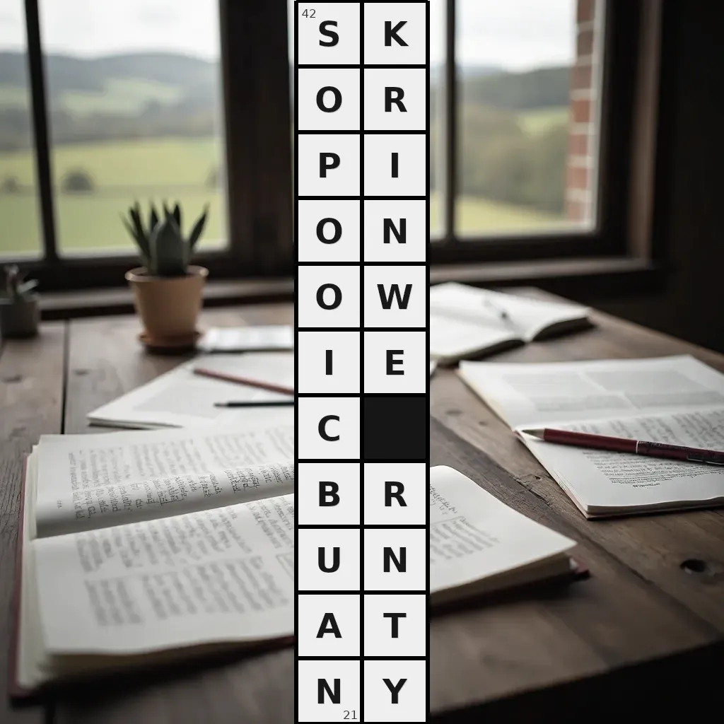 Słowo „skorpionowiec brunatny” ma 21 znak (bez spacji i łączników).