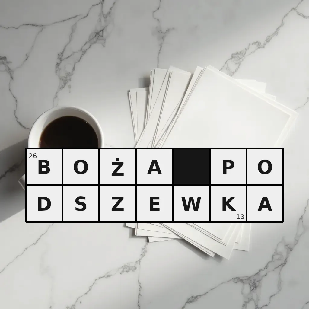 Słowo „boża podszewka” ma 13 znaków (bez spacji i łączników).