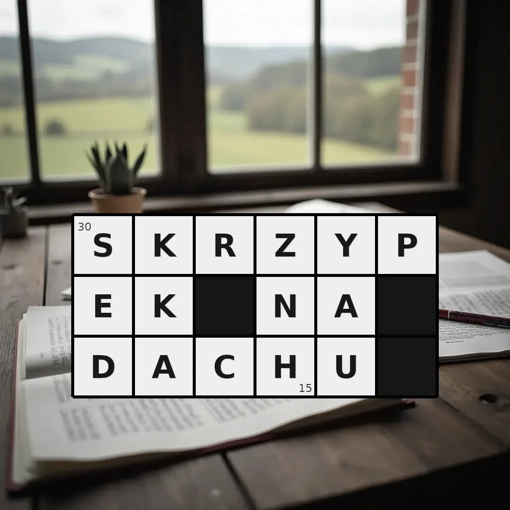 Słowo „skrzypek na dachu” ma 15 znaków (bez spacji i łączników).