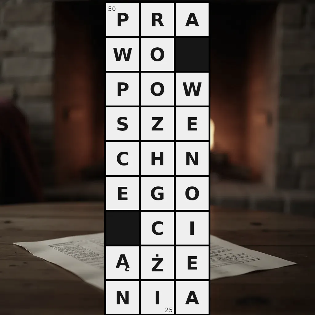 Słowo „prawo powszechnego ciążenia” ma 25 znaków (bez spacji i łączników).