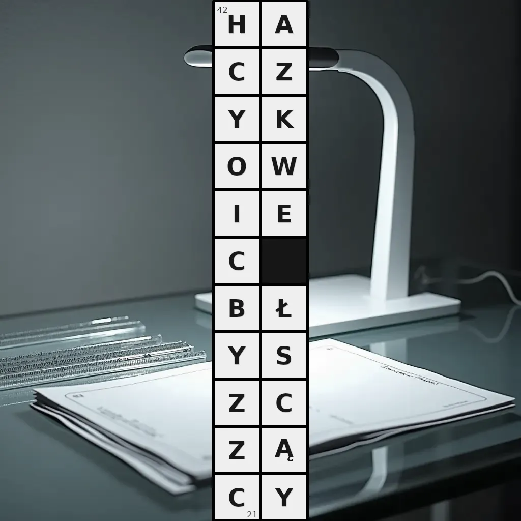 Słowo „haczykowiec błyszczący” ma 21 znak (bez spacji i łączników).
