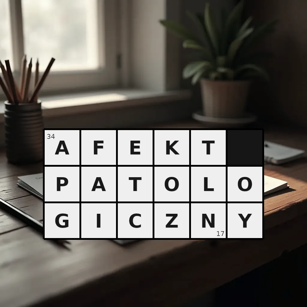 Słowo „afekt patologiczny” ma 17 znaków (bez spacji i łączników).