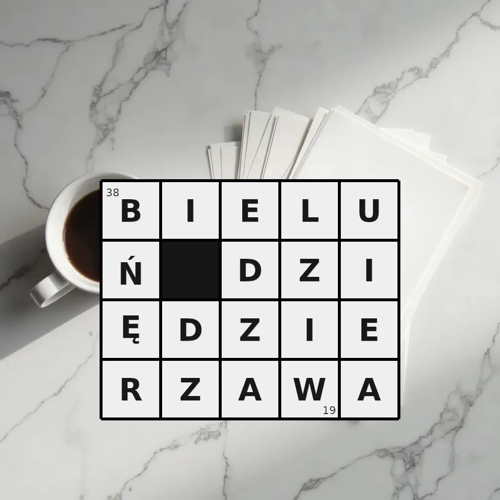 Zawiera litery: A, A, B, D, D, E, E, I, I, I, L, R, U, W, Z, Z, Z, Ę, Ń