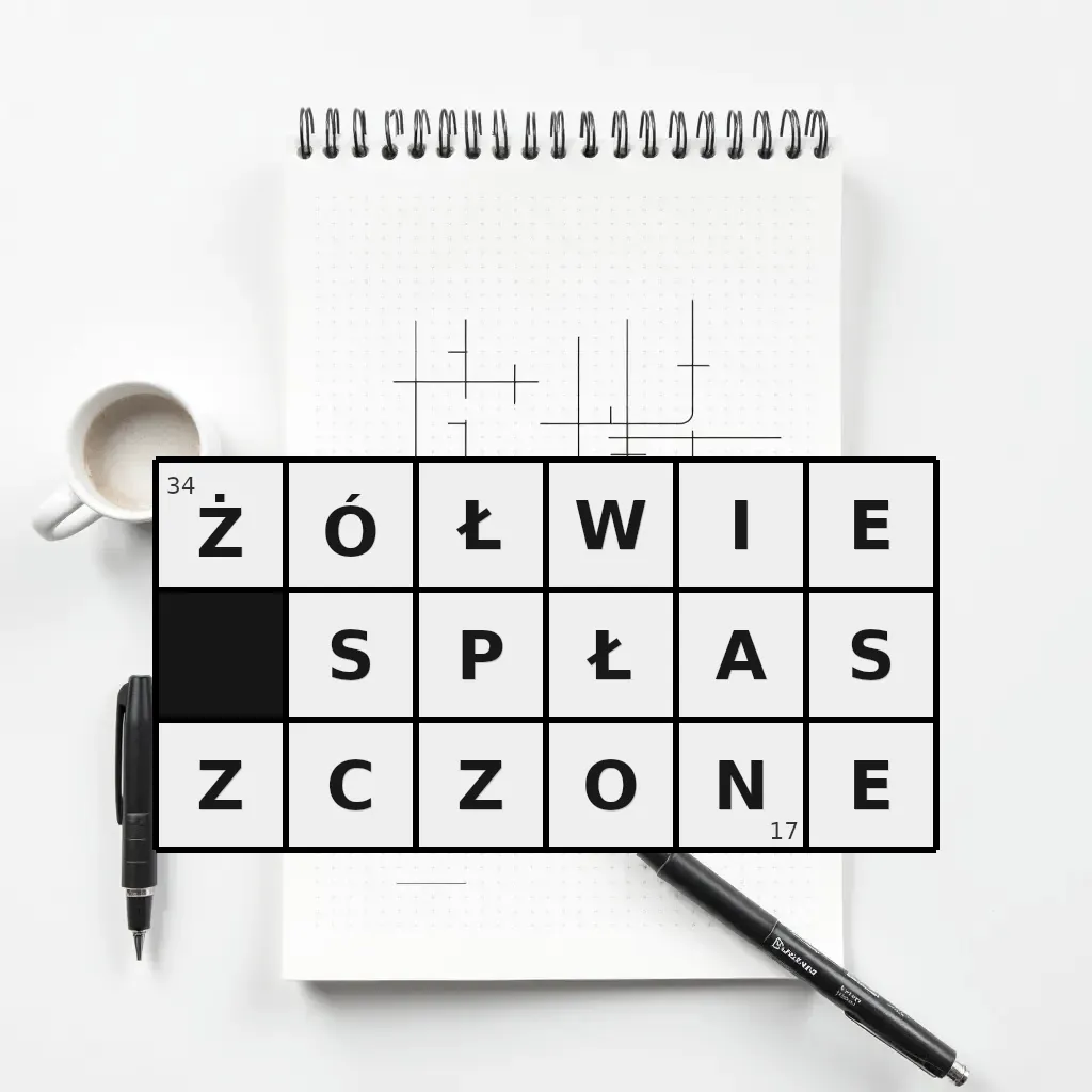 Słowo „żółwie spłaszczone” ma 17 znaków (bez spacji i łączników).