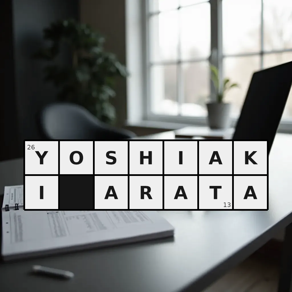 Słowo „yoshiaki arata” ma 13 znaków (bez spacji i łączników).