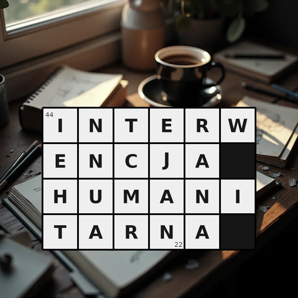 Słowo „interwencja humanitarna” ma 22 znaki (bez spacji i łączników).