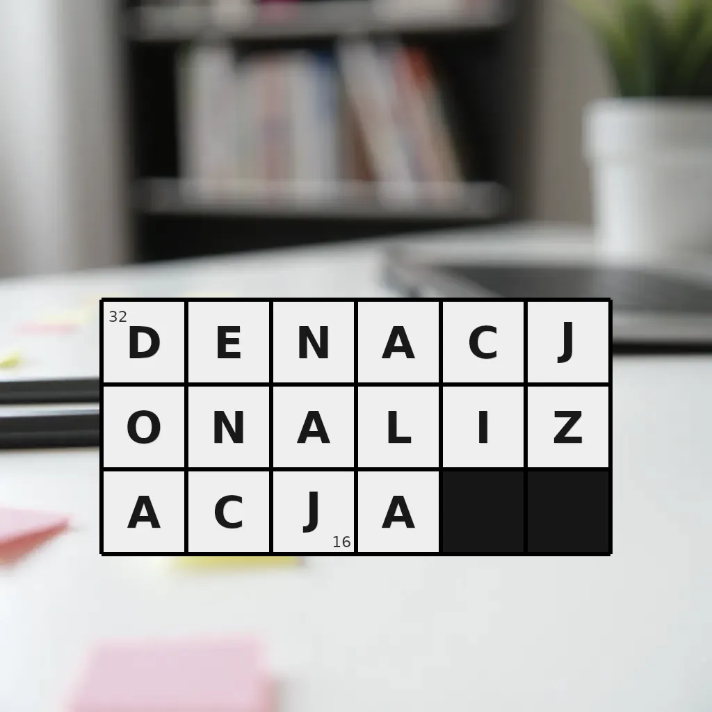Zawiera litery: A, A, A, A, C, C, D, E, I, J, J, L, N, N, O, Z