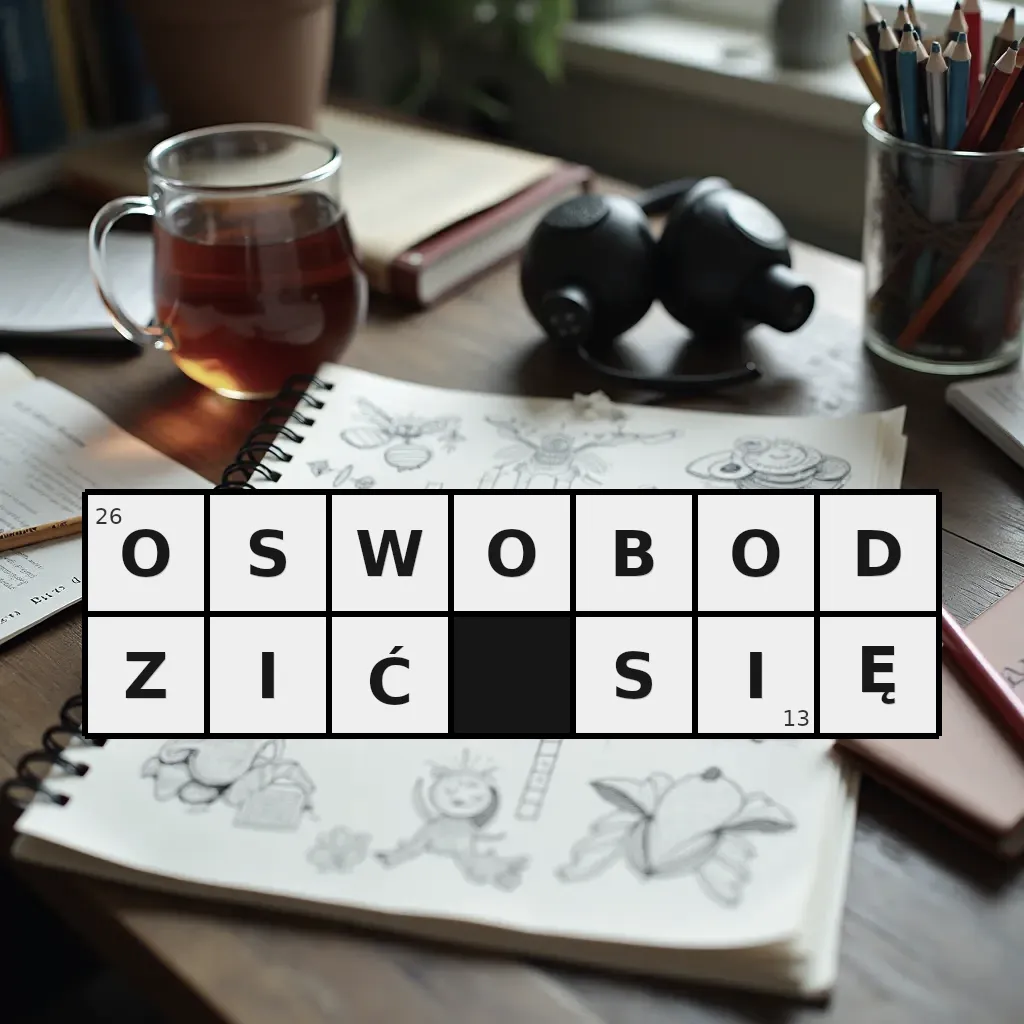Słowo „oswobodzić się” ma 13 znaków (bez spacji i łączników).