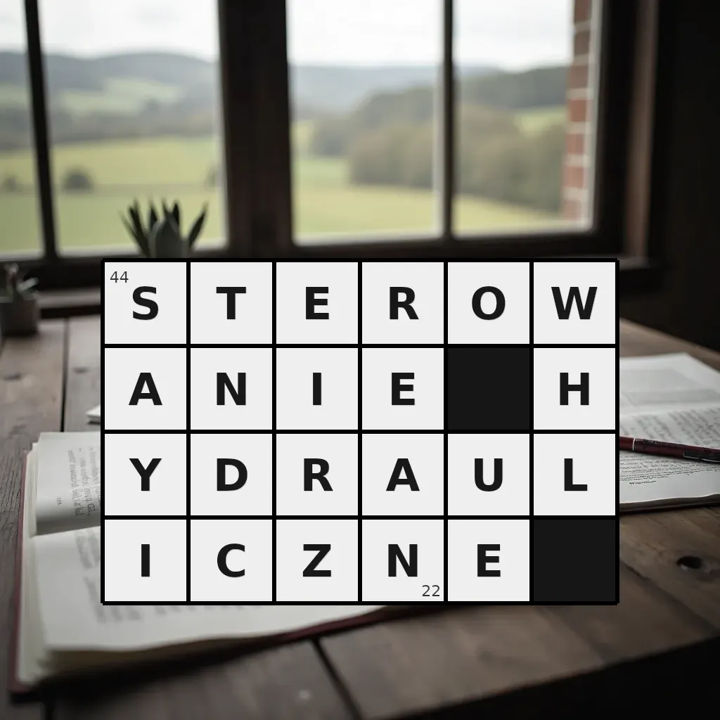 Słowo „sterowanie hydrauliczne” ma 22 znaki (bez spacji i łączników).