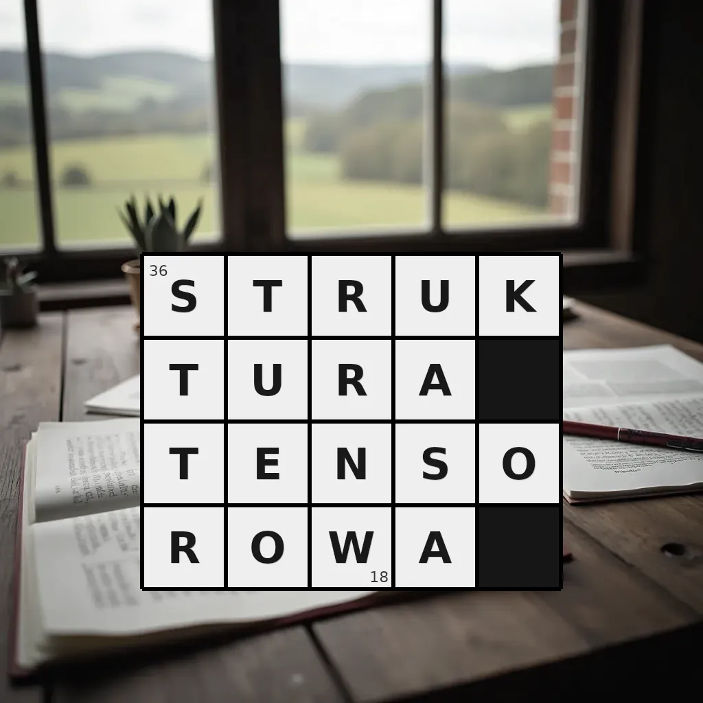 Słowo „struktura tensorowa” ma 18 znaków (bez spacji i łączników).
