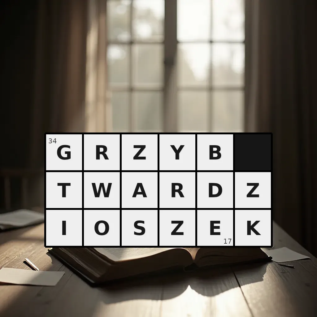 Słowo „grzyb twardzioszek” ma 17 znaków (bez spacji i łączników).