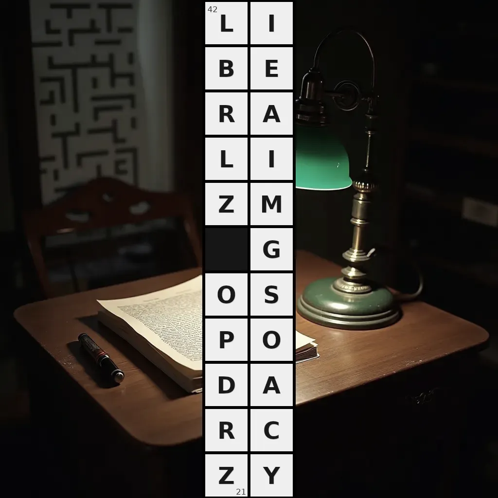 Słowo „liberalizm gospodarczy” ma 21 znak (bez spacji i łączników).