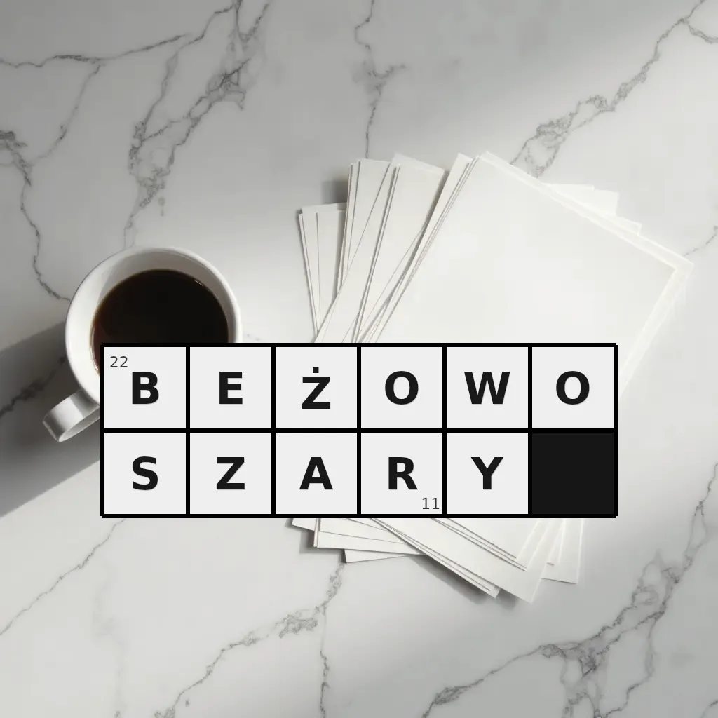 Słowo „beżowoszary” ma 11 znaków (bez spacji i łączników).
