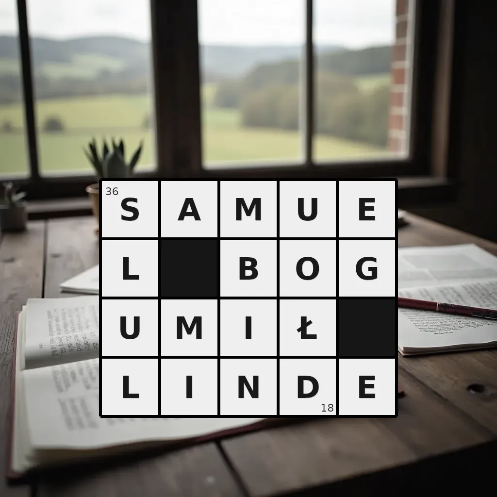 Słowo „samuel bogumił linde” ma 18 znaków (bez spacji i łączników).