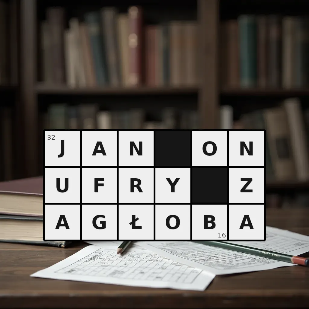 Słowo „jan onufry zagłoba” ma 16 znaków (bez spacji i łączników).